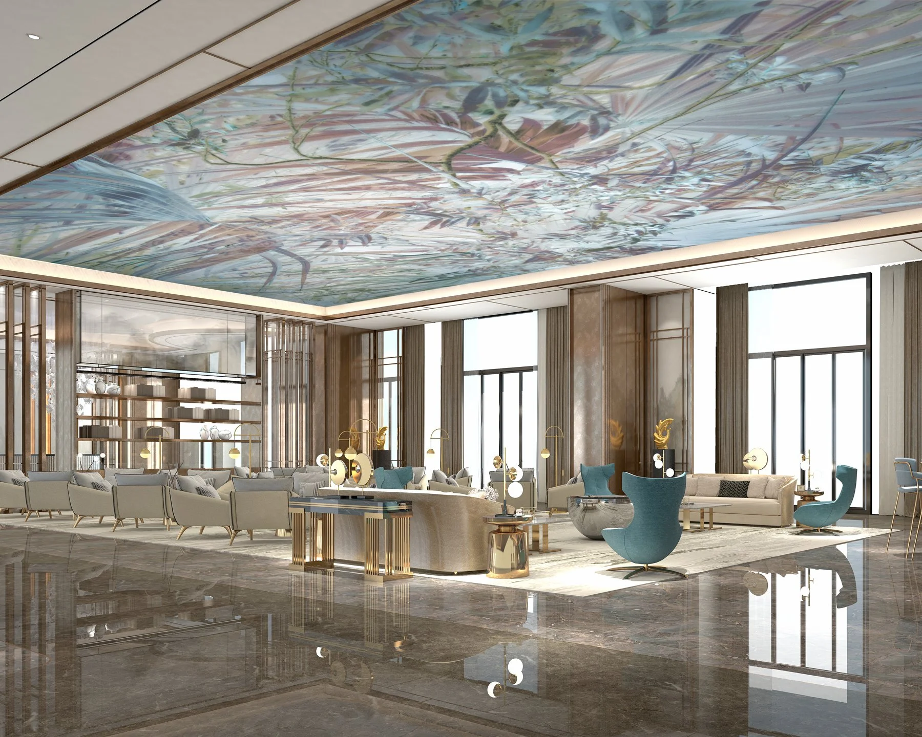 Light-responsive surfaces with customized imagery and translucency suitable for interiors. Perlumina by Revelation Logic technology can be applied as acrylic or glass to almost interior design context where visual enhancement employing reflected light would enhance beauty and enrich the experience of space.